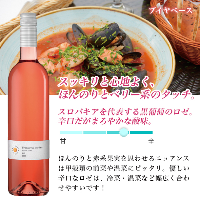| ソムリエコメント | スロバキアワイン赤ワインの代表品種によるロゼ、あくまでもスッキリと心地よくほんのりとベリー系のタッチ。 |