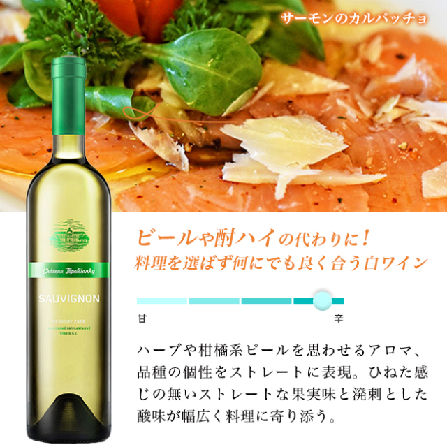 | このワインに合う料理 | 鮮魚のカルパッチョ、シーザーサラダ、ポテトサラダ、魚介のワイン蒸し、アヒージョ、パスタ、焼き鳥 |